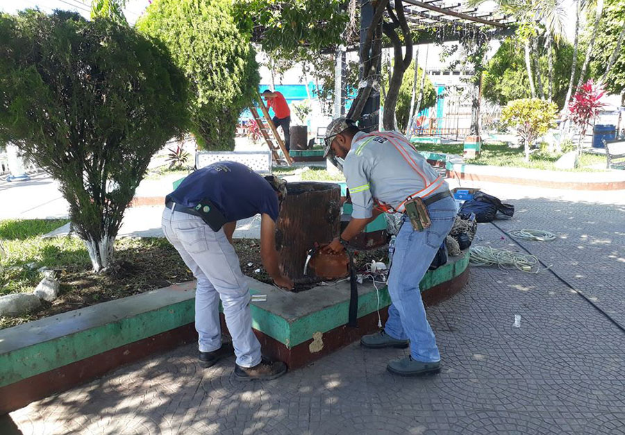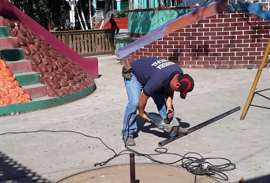 Adornos y pintura en parque municipal