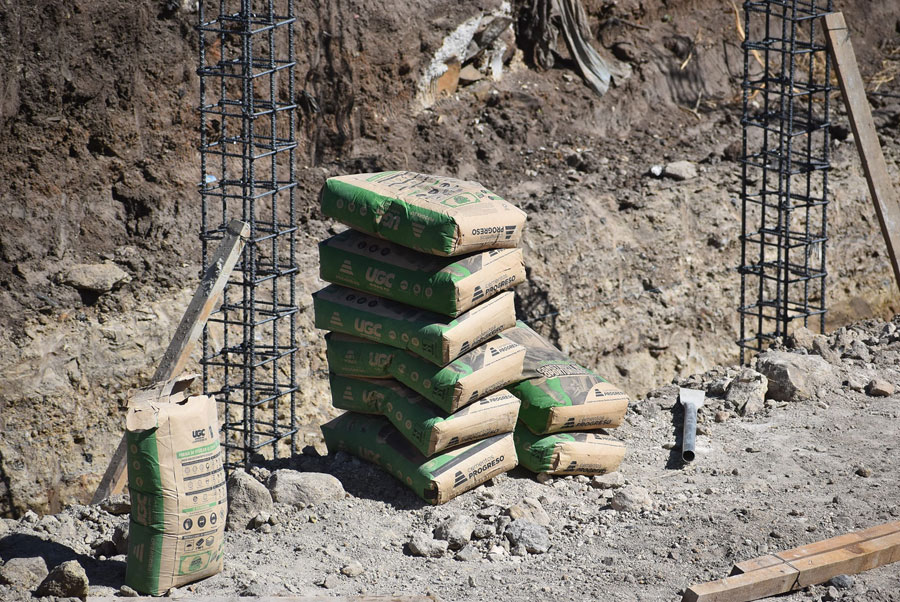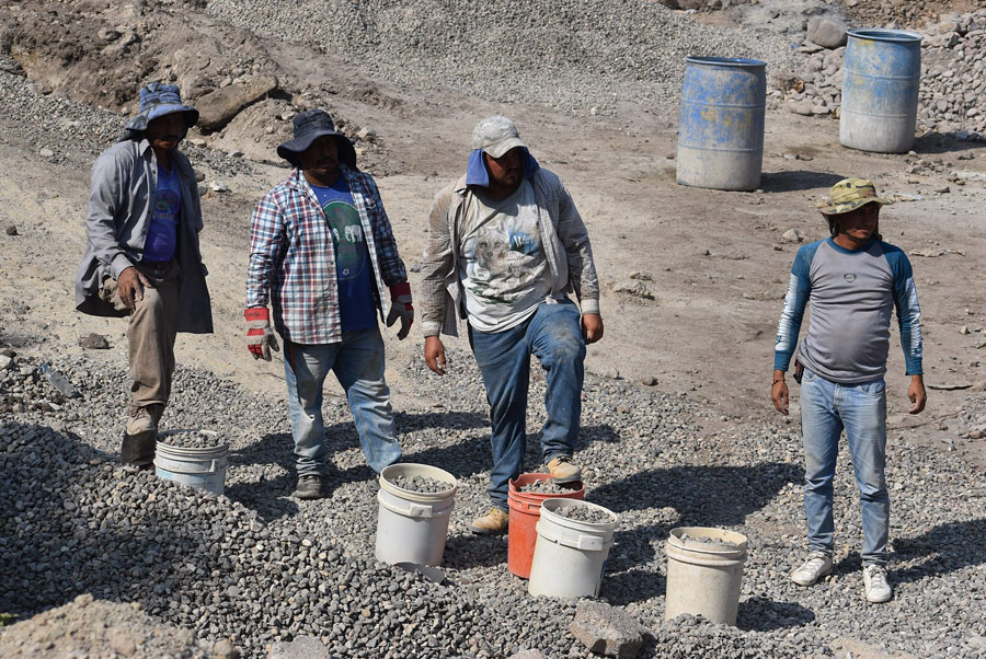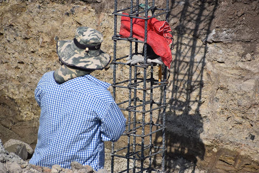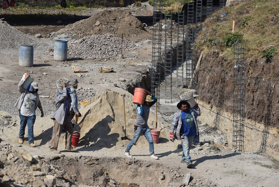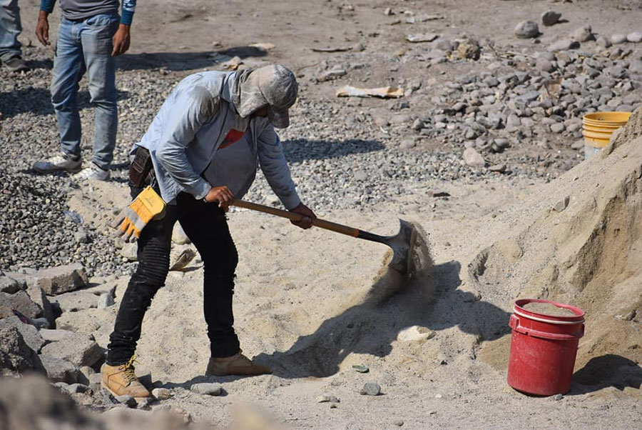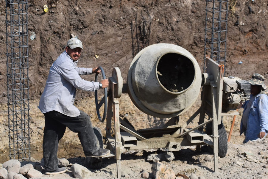 Albañiles y ayudantes trabajan en el quinel de conducción de agua