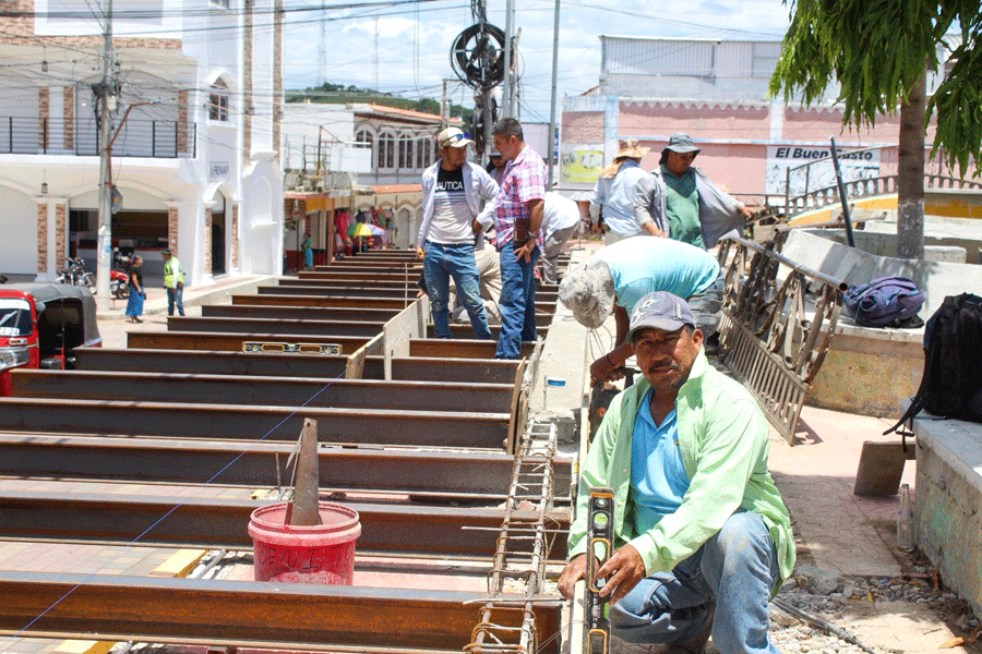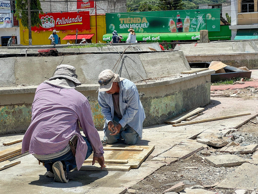 ALBAÑILES SIGUEN TRABAJANDO EN LA RECONSTRUCCIÓN DEL PARQUECITO TRES DE MAYO.