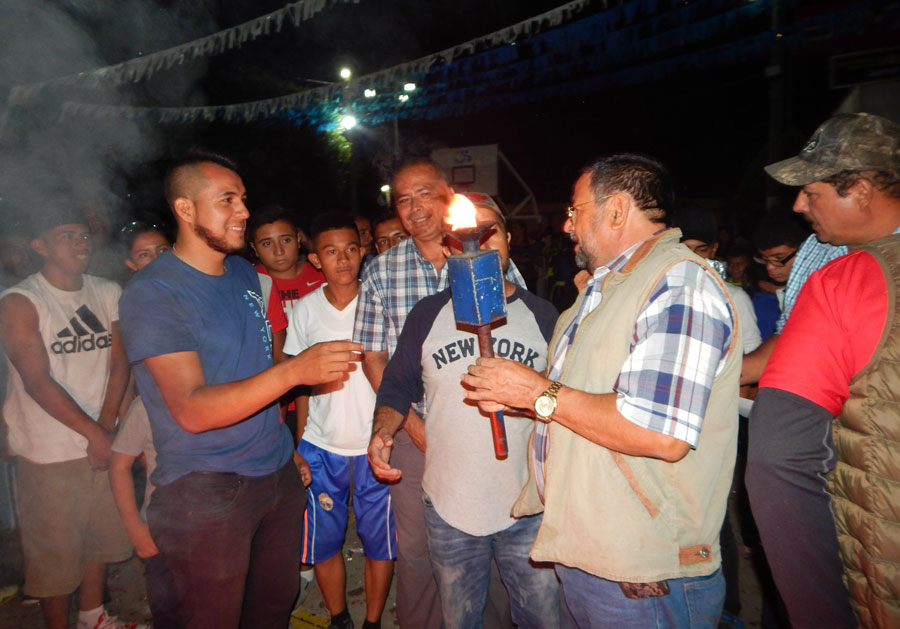Alcalde municipal y autoridades educativas encienden antorchas y participan en el desfile de independencia.