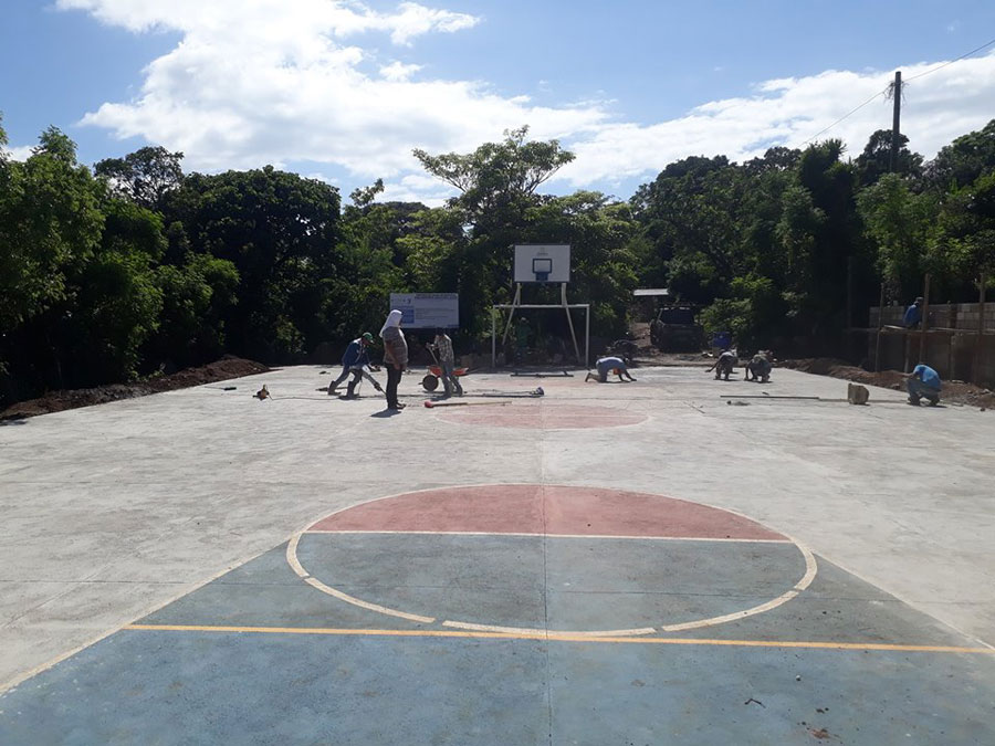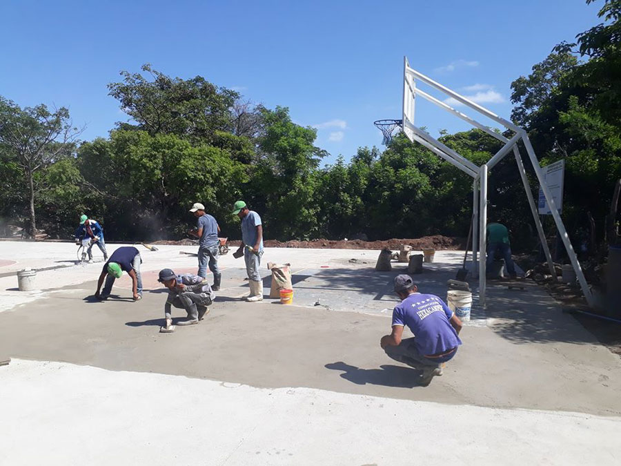 Continúan trabajos en cancha polideportiva aldea Monte Rico