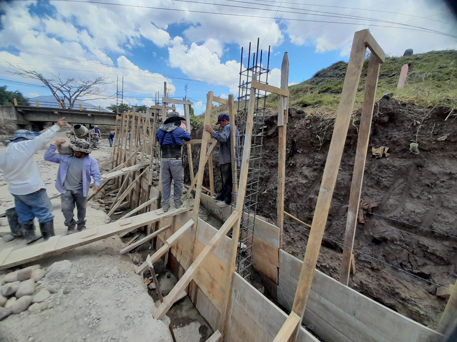 Albañiles apoyan a fontaneros elaborando cajas de registro de drenajes