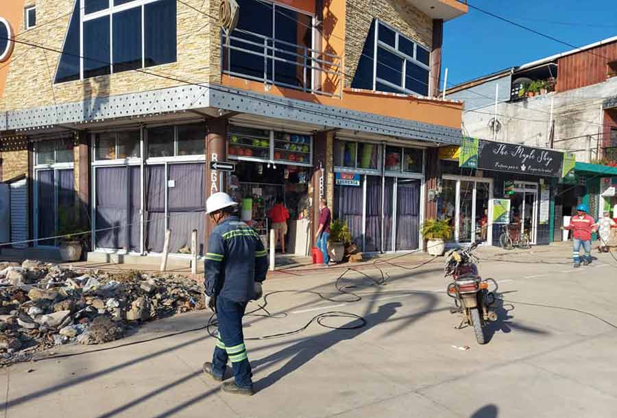Personal de ENERGUATE realiza trabajos de retiro de postes junto con su tendido eléctrico en el área de la terminal de buses