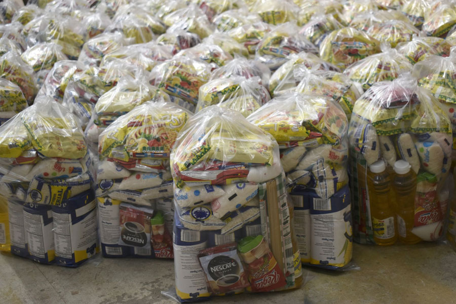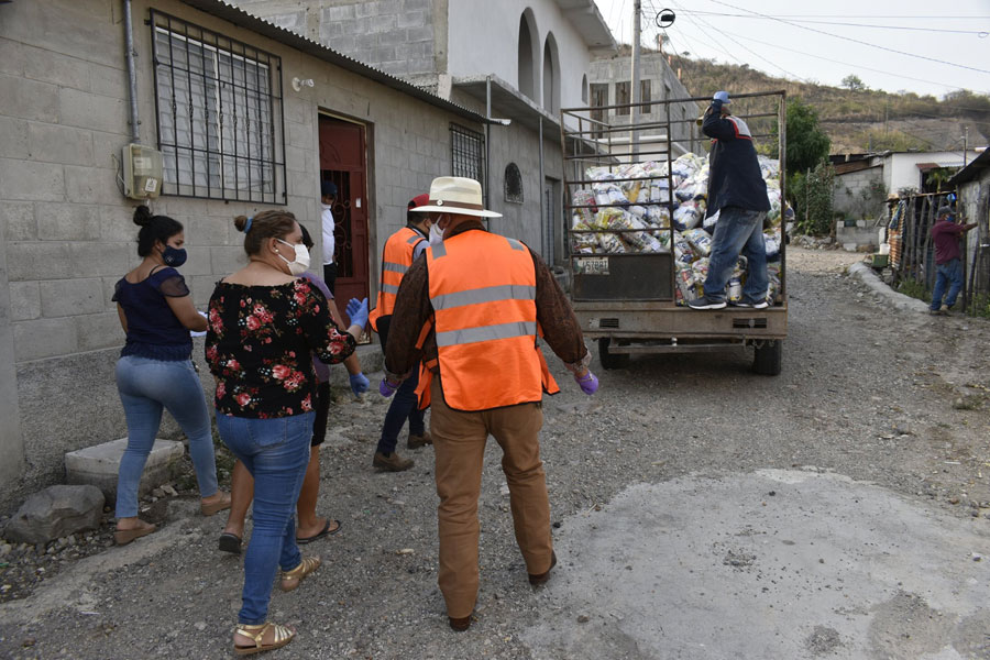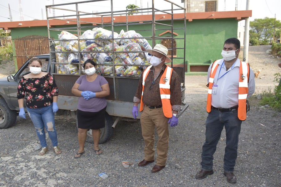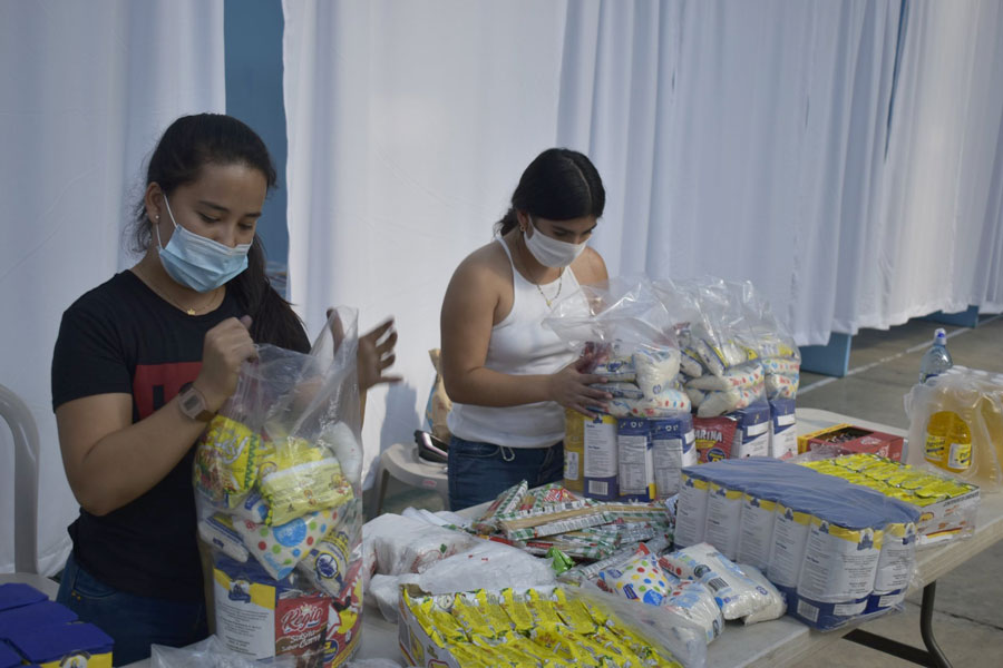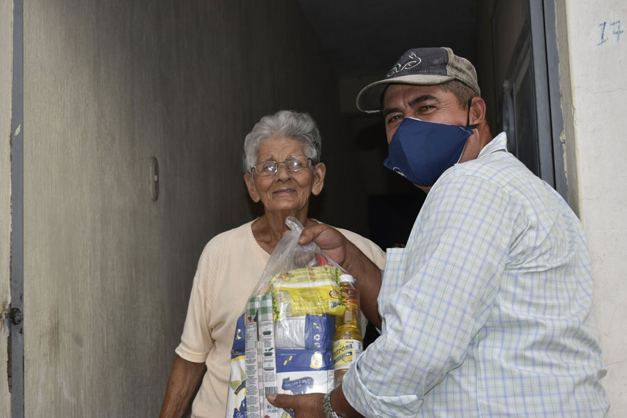 Entregan bolsas de víveres a vecinos
