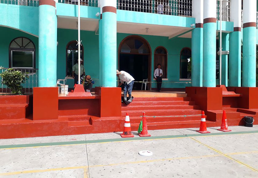 La Municipalidad se une hoy con devoción para elaborar la alfombra institucional a un costado de nuestro edificio municipal