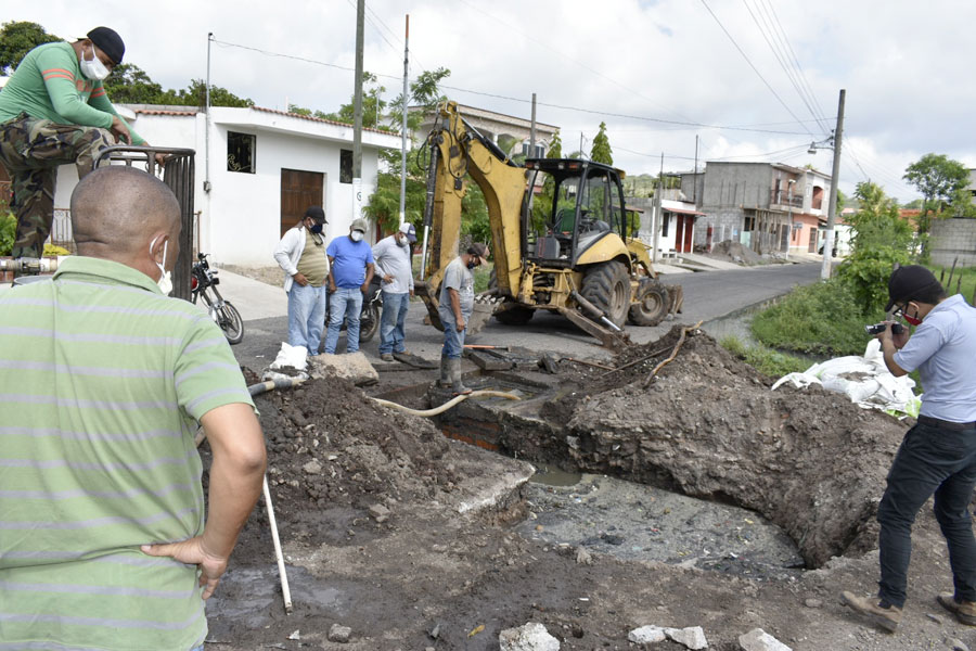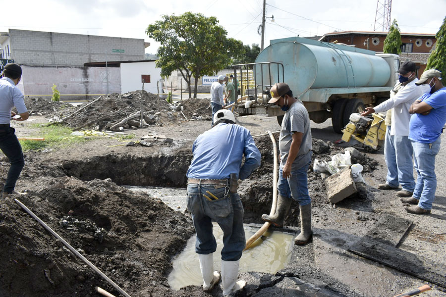 Fontaneros municipales reparan drenaje principal en Tecuán