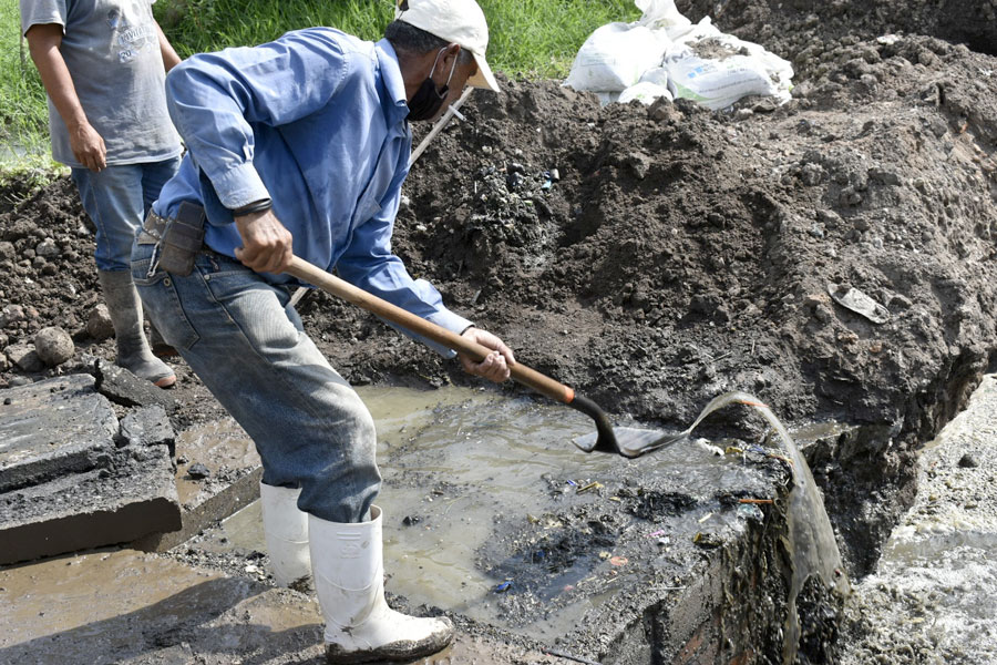 Limpieza de drenajes colapsados en el Barrio Tecuán