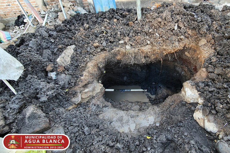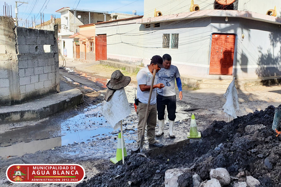 Trabajando en la segunda fuga de agua detectada en el nuevo pavimento de Barrio La Federal