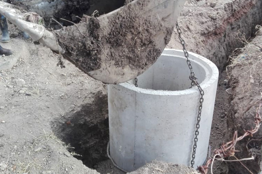Albañiles apoyan a fontaneros elaborando cajas de registro de drenajes