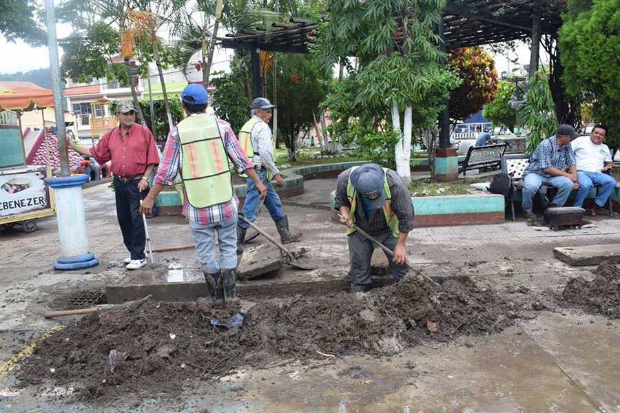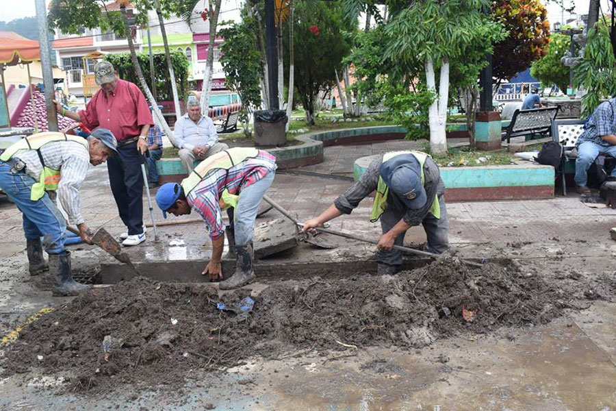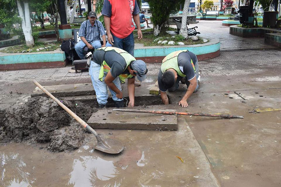 Limpieza de drenajes colapsados en el Barrio Tecuán
