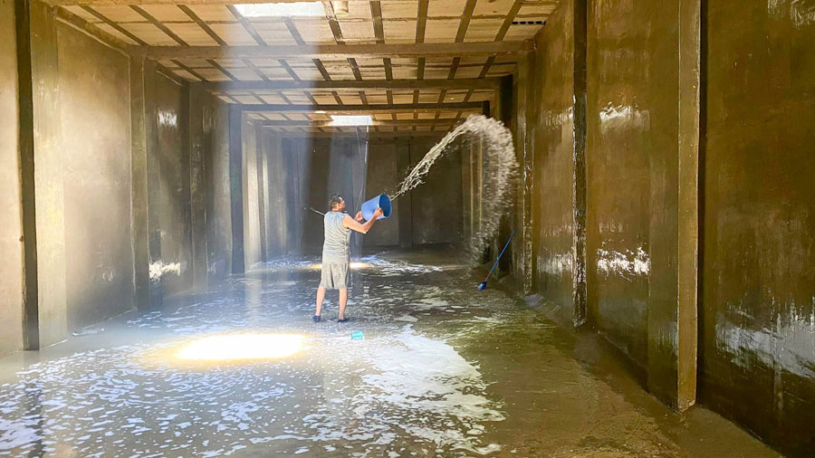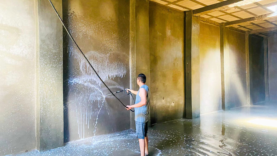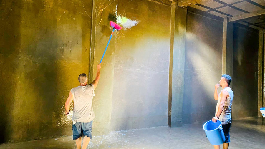 Limpieza y desinfección del tanque de captación del vital líquido ubicado en la “joya” barrio el Altillo
