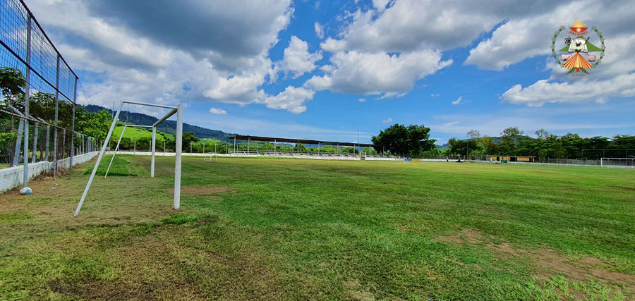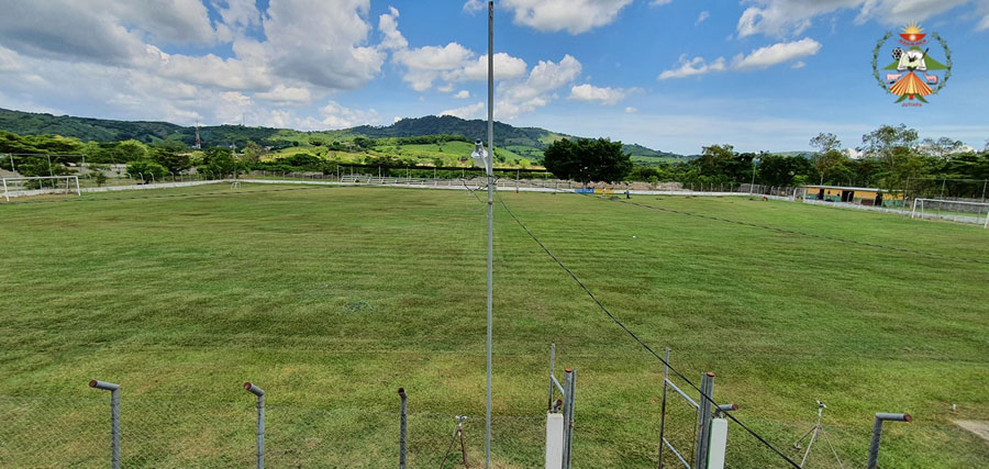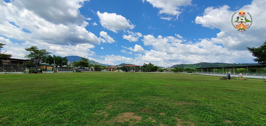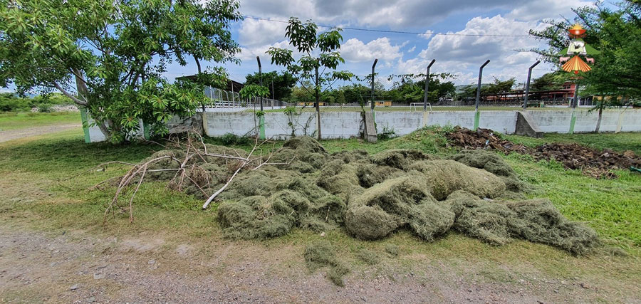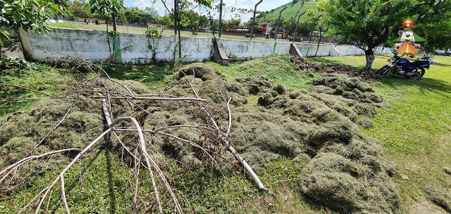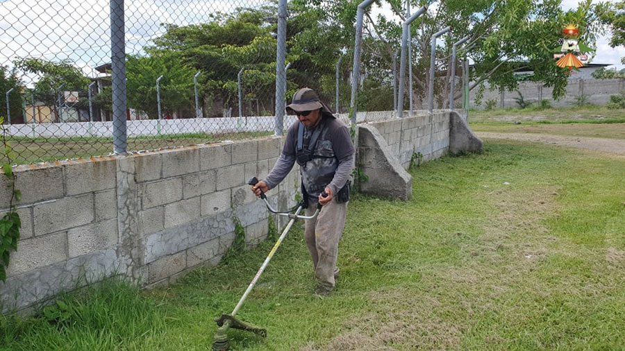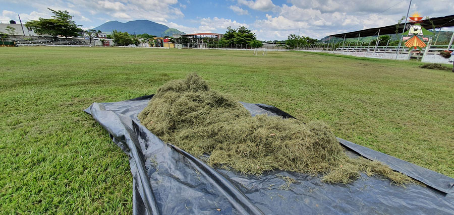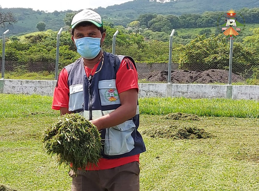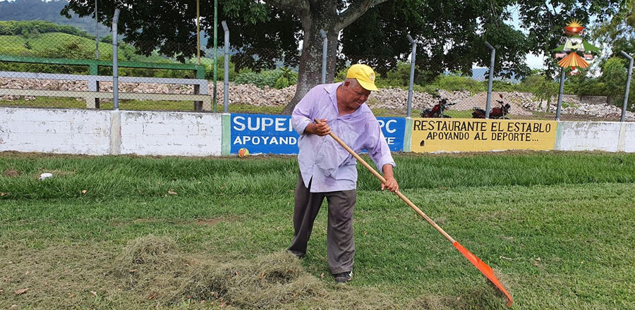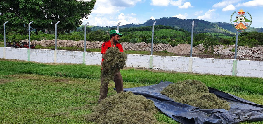 Trabajos de corte de césped en el Estadio Roquelino Escobar