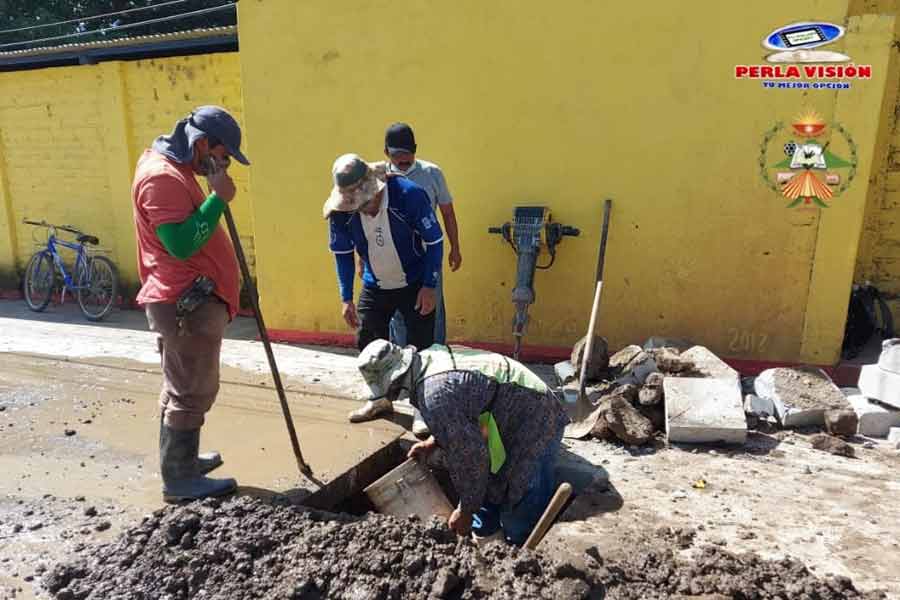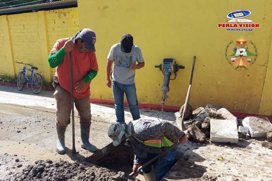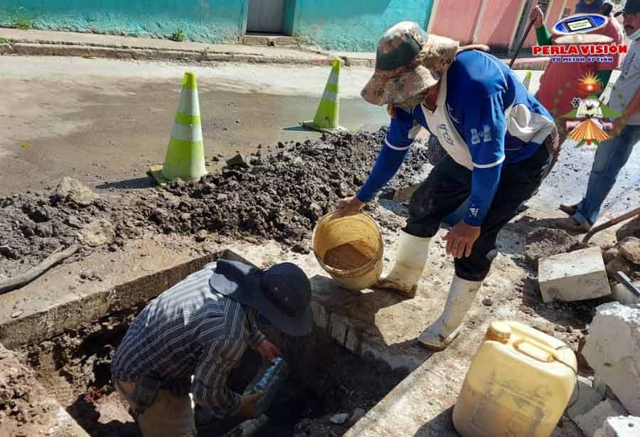 Trabajando en la segunda fuga de agua detectada en el nuevo pavimento de Barrio La Federal